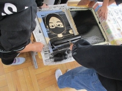 4年図工 版画 インクをローラーでつけて、いよいよ印刷です。