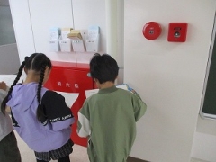 3年社会科 消防の学習 学校の防火設備を調べています。