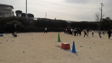 体育委員会が25分休みの活動(自由参加)を考えました。三滝・三重平中学校区の体育部会の話し合いでは、昨年から子どもたちの投げる力が弱いということが話題となっていました。そのこともあって、たくさんの子に少しでも投げる運動を楽しんでもらうことをねらった取り組みを体育委員会の子どもたちが考えてくれました。今日はたくさんの子どもたちが参加し、楽しんでいました。