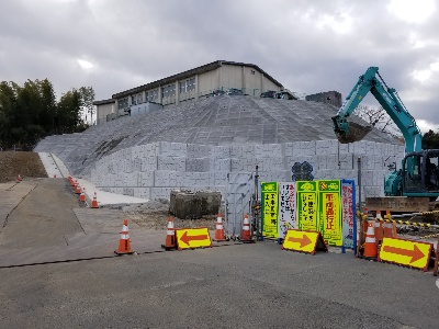 今日も出張からの帰りに北階段の工事現場を下から見てみました。下から見ても完成後の階段がイメージできるようになってきていました。
