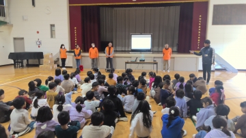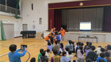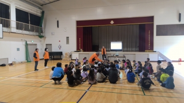 今年も川島地区防災協議会より1年生が保存水を一人一本いただきました。2限目はその贈呈を兼ねて水の大切さや防災についての話を聞きました。