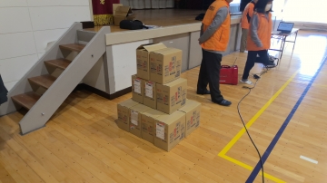 いただいた水は、いざという時のために南校舎3Fの倉庫に保管します。過去何年間分の水も倉庫に保管されていて災害に備えています。