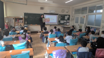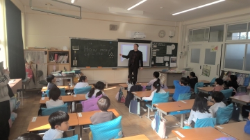 1年生の外国語活動の様子です。今日は「How many?」との問いに、ブロック等の数を答える活動でした。ニール先生の楽しそうな雰囲気に乗せられ、子どもたちも楽しそうに答えていました。
