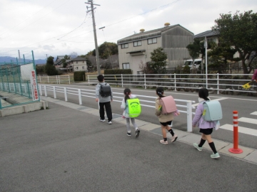 朝の集団登校の様子です。高学年の班長・副班長のもと、1列に並んで歩いていました。「おほようございます」と、あいさつも大きな声でできていました。今日は地域の方も登校指導に来ていただいていました。いつもありがとうございます。