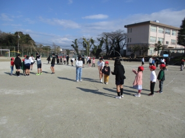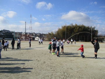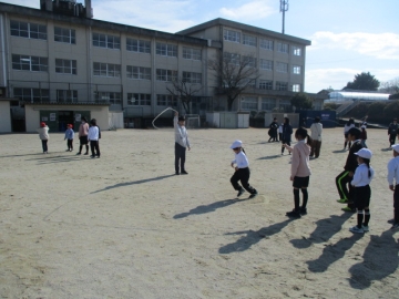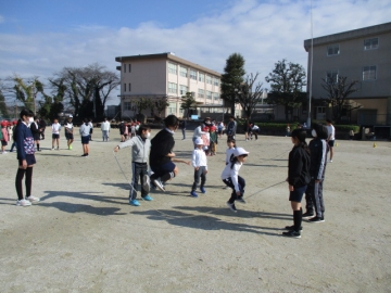1年生と6年生が一緒になって長なわを楽しんでいました。たくさんのグループに分かれ、6年生がていねいに1年生に教えていました。短い時間でしたが、1年生もとても上手になっていました。