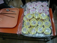 昨日の6年生の給食は、卒業を祝って少し特別なメニューでした。カレーやサラダのほかに、トンカツかエビフライ、プリンかすだち&桃ゼリーの2品が付きました。喜んでもらえたようで、とてもよかったと思います。