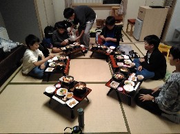 予定通り、夕食の時間となりました。今回は部屋食となりましたが、みんな美味しそうに食べていました。