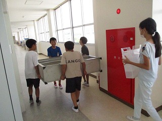 校舎の改修工事があったため、3,4,6年生は、朝から机 ・椅子の移動です。
