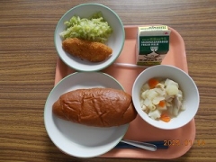 黒糖パン 牛乳 白身魚フライ カレーキャベツ ポトフ