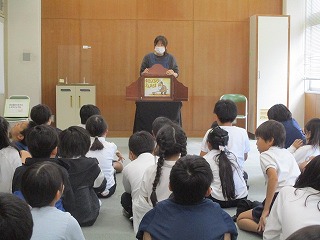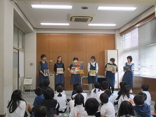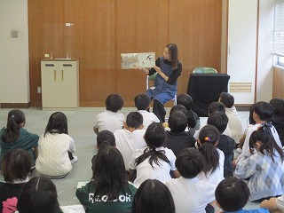 ブックママさんによる読み聞かせをしていただきました。ブックママさんたちが順番に絵本や紙芝居を読んでくれました。子どもたちはブックママさんの語りに引き込まれ、とても集中して聞いていました。子どもたちへの読み聞かせありがとうございました。