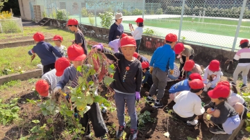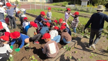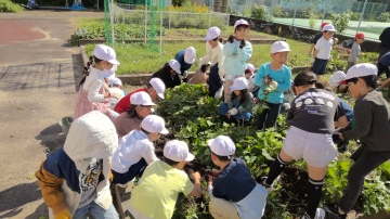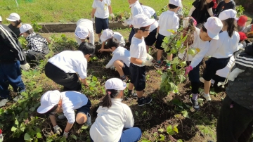 1年生が学年の畑で「いもほり」をしました。「こんな大っきいの取れたよ」等、子どもたちの笑顔と歓声で畑は大盛り上がりでした。最後は掘り残したものはないか、一度掘ったところも何度も掘り起こし確かめていました。