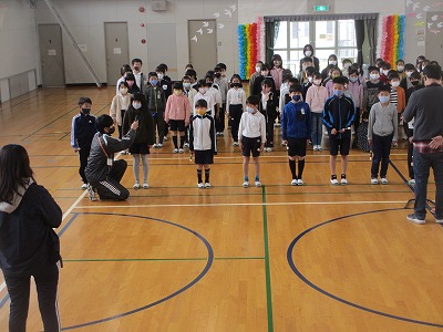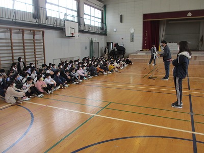 3年生も明日の「6年生を送る会」の練習をしていました。先生の話を聞いた後、代表のあいさつやみんなで行う出し物の練習をしました。
