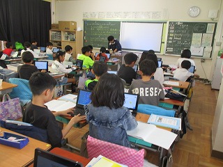 4年生が社会科で地域の伝統について調べています。先日は川島地区のまちづくりの仕組み様子について、地域の方から話を聞きました。今日は川島地区、四日市市、三重県と、それぞれが自分の興味のある伝統行事について調べている場面でした。その活動の中で川島地区のHPを見つけ、活動の様子を改めて知る機会ともなっていました。