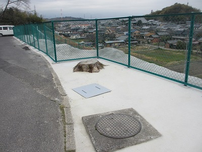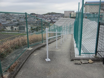 今日は、階段の手すりに下地のペンキが塗られていました。階段はほとんど完成し、あとは北斜面下の道路の舗装やガードパイプの設置等の