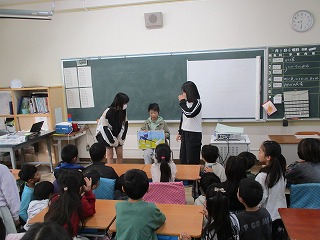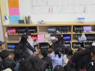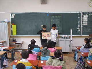 今日は図書委員による読み聞かせが1,2年生に向けて行われました。1,2年生の子どもたちは、食い入るように図書委員の読み聞かせを聞いていました。