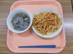 (非常時給食)ツナと野菜のスパゲッティ 野菜スープ