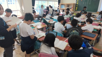 4年生の国語では「くらしの中の和と洋」を学習しています。和と洋のそれぞれの良さ等をタブレットやプリントにまとめていました。
