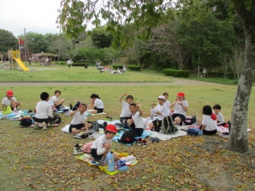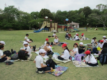 3・5年生は南部丘陵公園が目的地です。長い距離を歩いたこともあり、11時過ぎには早くも昼食でした。他の学校との重なりもなく、広い公園内で思う存分楽しんでいました。