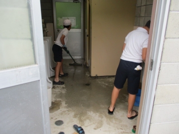 作業の開始時は少し寒いくらいでしたが、さすが6年生です。「みんなが気持ちよくプールに入れるため」にと、作業場所を分担して一生懸命に作業を行っていました。プールの底や壁はもちろん、プールサイド、