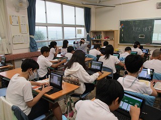 5年生の国語では「注文の多い料理店」の学習をしています。この時間はそれぞれが考えたい課題を作り、それをみんなで考え合っている場面でした。たくさんの課題からいくつかの課題を選び、自分の考えを書き込んでいました。