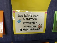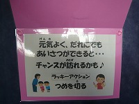 保健室の前には、健康おみくじが掲示されています。一日一回、引けることになっています。おみくじの中は「あ」ならば、「元気よく、だれにでもあいさつができると・・・チャンスが訪れるかも♪」 「ラッキーアクション つめを切る」となっています。