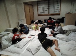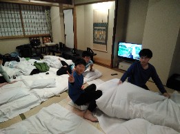 入浴を済ませて、今はみんな部屋でくつろいでいます。この後は、22時30分に就寝となります。明日に備えて、ゆっくり休んで欲しいと思います。