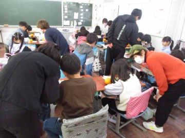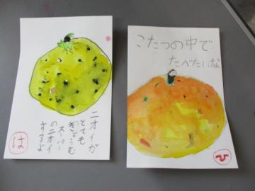 3年生が「すてきな町:川島」の学習では、誰にとっても住みよい町について考え合っています。今日は高齢者の生活についての学習でした。地域の絵手紙教室で活動する高齢者の方々に来ていただき、普段の活動の紹介を兼ねて3年生の子どもたちも体験しました。最初は「むずかしいそう」という声が聞こえてきましたが、しばらくすると「うまく描けたよ」「できた」等、楽しく作業を進めていました。
