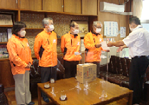 先日、防災時のための保存水を、川島地区防災協議会よりいただきました。これは毎年、1年生がいただく物で、今年も会長の高橋輝夫様より、7年間保存の水(2L・96本)をいただきました。災害に備えて保管しておきたいと思います。