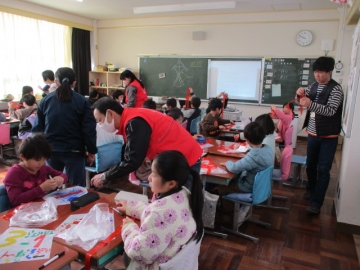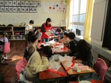 3年生が凧作り、凧あげに取り組みました。川島地区青少協、かわしまっこもりあげ隊、地区市民センターの職員等、地域の方々にお世話になっての取り組みです。
