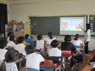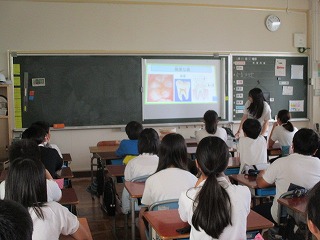 学習を進めました。歯肉炎の話からスタートし、食生活、歯みがきと子どもたちは自分の生活を振 り返りながらの学習でした。