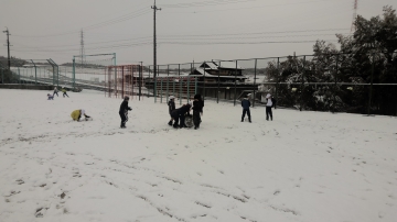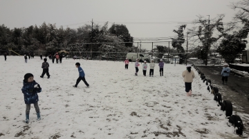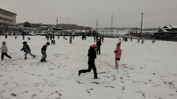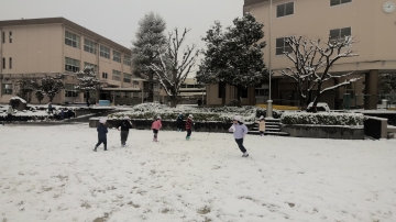 今日も積雪がありました。1・2年生の子どもたちが運動場で雪遊びを楽しんでいました。先日の雪はサラサラしていて丸めにくそうでしたが、今日の雪は丸めやすそうでした。雪の球を作ったり雪だるまを作ったりと楽しんでいました。