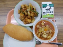 米粉パン 牛乳 いかと野菜のレモン風味あげ チーズ入りミネストローネ