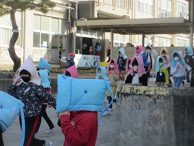 とも言われています。毎年恒例の避難訓練ですが、そのおかげで教室にいて地震が感じられたとき、子どもたちは素早く机の下に