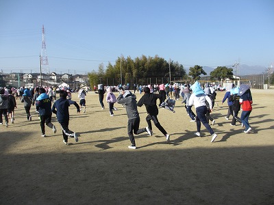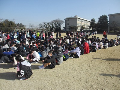 低学年の子どもたちも真剣な表情です 運動場に出てからはかけ足で