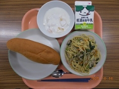 小型玄米パン 牛乳 和風スパゲッティ フルーツヨーグルト