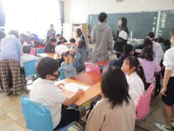 13日に児童会行事として、「川島ウォークラリー」が予定されています。各学級ごとにゲームや出し物を準備し、それをきょうだい学級のグループで楽しむ企画です。各学級ではそれぞれに準備がされ、校内にも紹介のポスターが貼られています。今日は、2・4年生、1・6年生が5限目に集まり、グループごとに回る順番等の相談をしていました。金曜日が楽しみです。