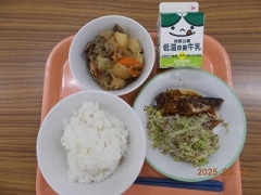 米飯 牛乳 いわしのピリ辛煮 ゆかりあえ 肉じゃが