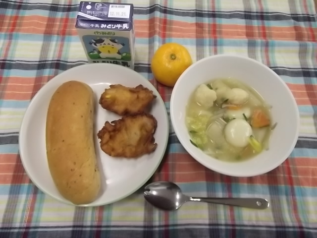 【メニュー】フィッシュバーガー 牛乳 ミネストローネ