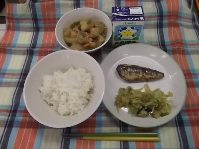 10月(がつ)も明日(あした)で終(お)わりですね。みなさん、10月(がつ)の給(きゅう)食(しょく)目(もく)標(ひょう)を覚(おぼ)えていますか? 10月(がつ)の給(きゅう)食(しょく)目(もく)標(ひょう)は「食(た)べもののはたらきについて考(かんが)えましょう〜黄(き)のなかま〜」でした。黄(き)の食(た)べものは、働(はたら)く力(ちから)や体(たい)温(おん)になるものです。どんな食(た)べものがあったか思(おも)い出(だ)してみましょう。パン・ごはん・めん・油(あぶら)・ごま・じゃがいも・さとうなどがありました。みなさんが考(かんが)えた食べものは、この中(なか)にありましたか? 献(こん)立(だて)表(ひょう)を見(み)て答(こた)えあわせしてみましょう。
