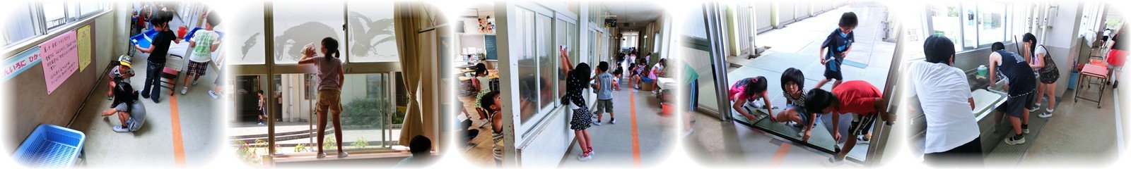 4枚目:1年生です。1学期お世話になって机の中の引き出しを,一人一人きれいに洗っていました。また,2学期によろしくですね。