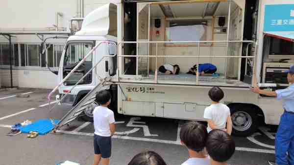 「起震車(地震体験車)」で実際の大地震の揺れと地震が起こった時の行動を学びました。