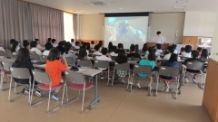今日は、学びの一体化事業として、楠こども園・楠中学校の先生方が来校され、主に道徳の授業公開を行いました。また放課後は、複数言語環境で育つ子どものことばの学びや教育について大学名誉教授の講演会を遠隔にて行いました。