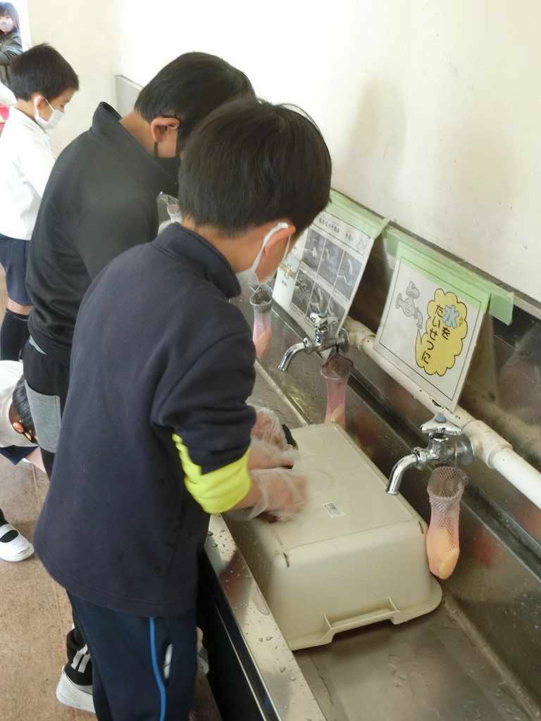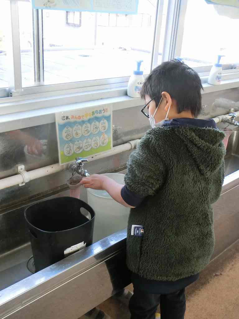 12月16日(木)は、学期に1回の大掃除でした。通常より10分長いので、いつもより熱心に取り組む姿が見られます。この日も、くつ箱の上、ごみ箱の中、牛乳パック入れ、ボールかごの中、箒のほこり取りなど、