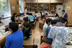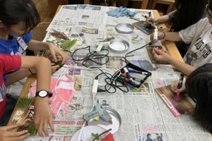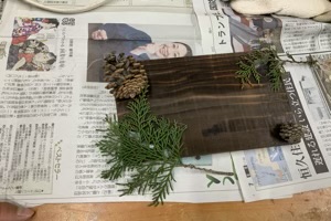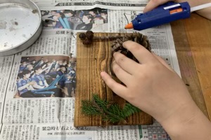 自分で拾った小枝や木の実などで飾り付け、好きな言葉などをカラーペンで書いて仕上げました。
