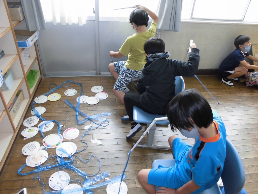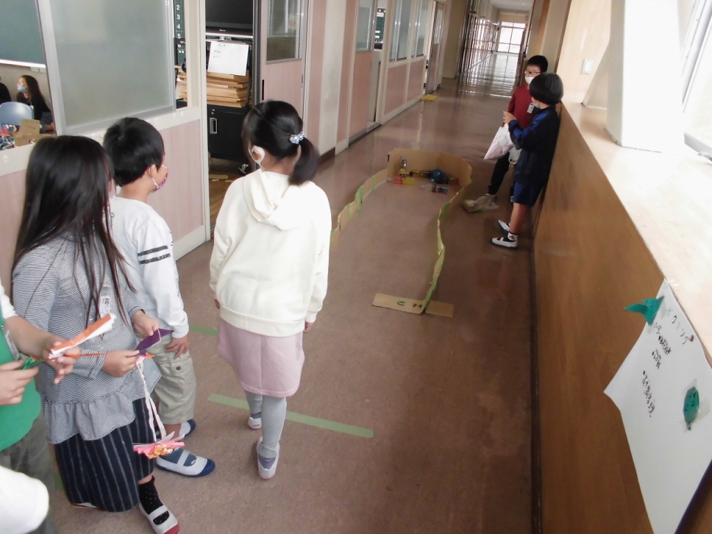 11月19日(木)2時間目に学年でおもちゃランドを開きました。2組の子どもたちがお店の人、1組の子どもたちがお客さんというふうに分かれて、各グループが作ったおもちゃで遊びました。ルールを守りながら、楽しく交流できました。