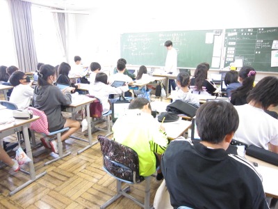今日は「葉まで運ばれた水はどうなるのか」について学習し、「気孔」の写真をタブレットで確認しました。