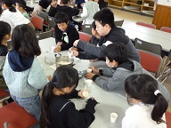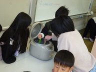 総合的な学習の時間で学んだことをいかし、お米と米麹で前日から「甘酒」を作り、パーティー当日にみんなで飲みました。