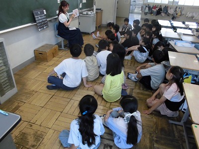 6月5日、読書週間にちなんで図書ボランティアさんに読み聞かせをしてもらいました。図書ボランティアさんの読み聞かせがとってもステキで、子どもたちは静かに聞き入っていました。