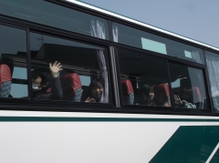 5年生が、「四日市公害と環境未来館」に向けて出発しました。
