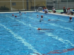 7月16日(木)と7月17日(金)に着衣水泳を行いました。水着で泳ぐ時とは違う感覚なので初めは戸惑っていましたが、徐々に慣れていきペットボトルやビニール袋などを使って浮くことができました。